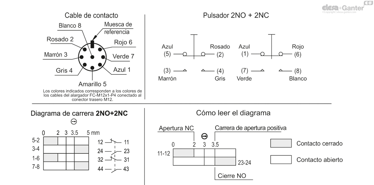 - M.2000-SWM-2NC-2NO-F2.5: 2 contactos NC + 2 contactos NO, cable longitud de 2.5 metros.